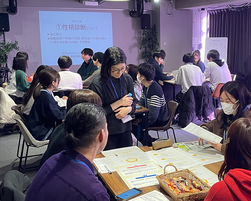浅野目 僕は「まじめ」タイプでした。実際に防災の活動をしている大学生もいて、やっぱり真面目な人が集まったグループでした。真面目グループは、結構真面目な話で盛り上がりました(笑)診断結果で出た性格タイプ別で出たおすすめの防災行動として、身近なものを使って行うトイレ訓練があり、そんなこと考えたこともなくて、おもしろかったです。