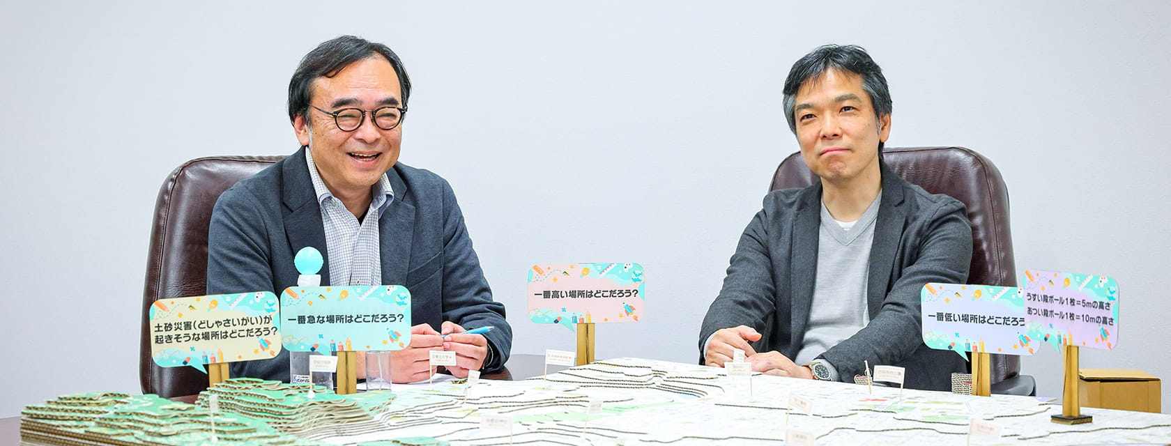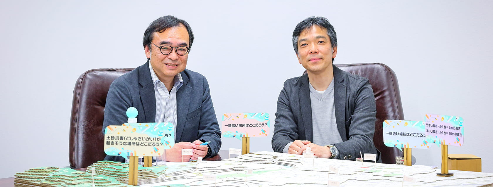▲(左から)株式会社MCラボ/代表取締役 阿部 清人さん 一般社団法人 防災ジオラマ推進ネットワーク 代表理事 上島 洋さん