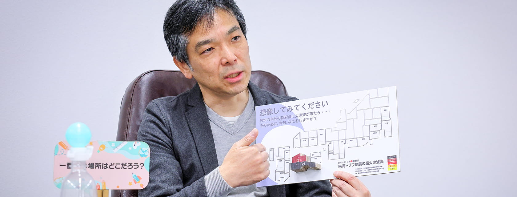 本格的にご依頼を受けるようになったのは、震災の後からです。震災の前からもっと防災要素を取り入れて伝えていれば、助かった命があったかもしれない。そんな強い想いがあって、防災のコンテンツを充実させました。今では年間120回ほど、47都道府県全部で講演しています。