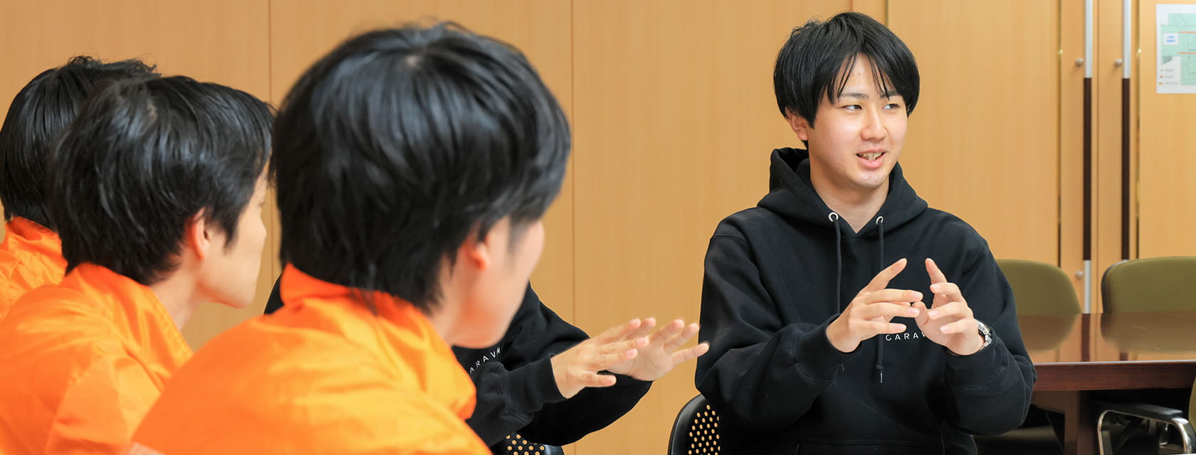 PASS相良 よく言われます。以前、PASSの代表をしていた時に後輩に「カリスマ性がない」と言われて(笑)。副代表の髙野くんの言葉には影響力があるので、全員に対して何か発信する時は髙野くんに任せて、一人ひとりの細かい声がけは私が担当することで、お互いの良さを生かしながらうまく棲み分けしています。
