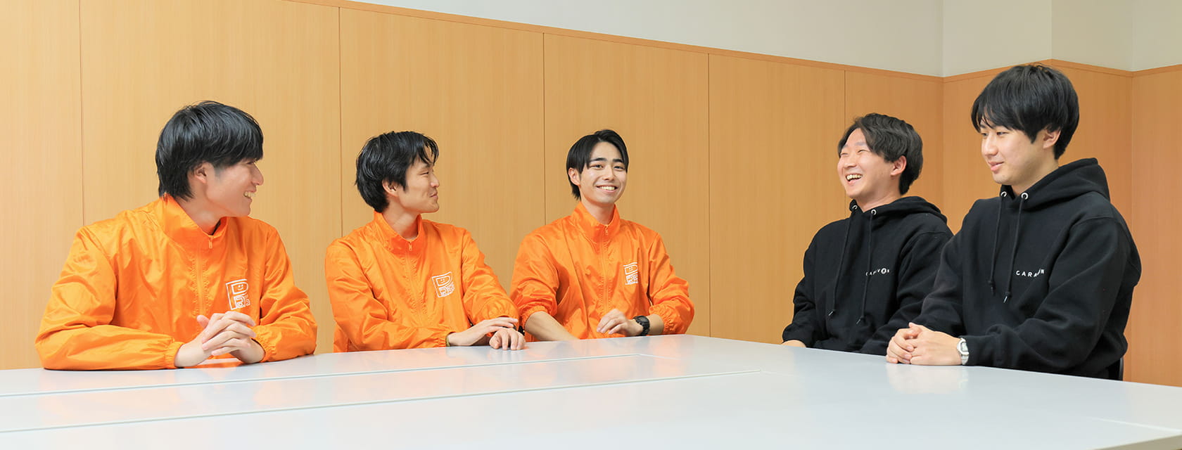 PASSの丹野広夢さん、相良豪壮さん、髙野健太さん、CARAV@Nの伊藤匠人さん、山田尊仁さんの5名でクロストークを行いました。