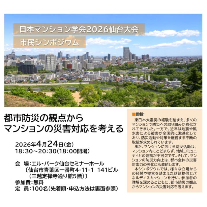 当室では、東日本大震災の経験と教訓をふまえ、快適で防災力の高い「防災環境都市づくり」を推進しています。「仙台防災枠組2015-2030」が完了を迎える2030年に向け、幅広い活動をされている皆さまと共に、様々な取り組みをしていきたいと思っておりますので、よろしくお願いします。また、仙台防災未来フォーラムへの出展・参加もお待ちしております。(※出展申込の時期を設けております。詳しくは「防災環境都市・仙台」ホームページをご確認ください。)