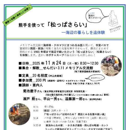 熊手を使って「松っぱさらい」―海辺の暮らしを追体験