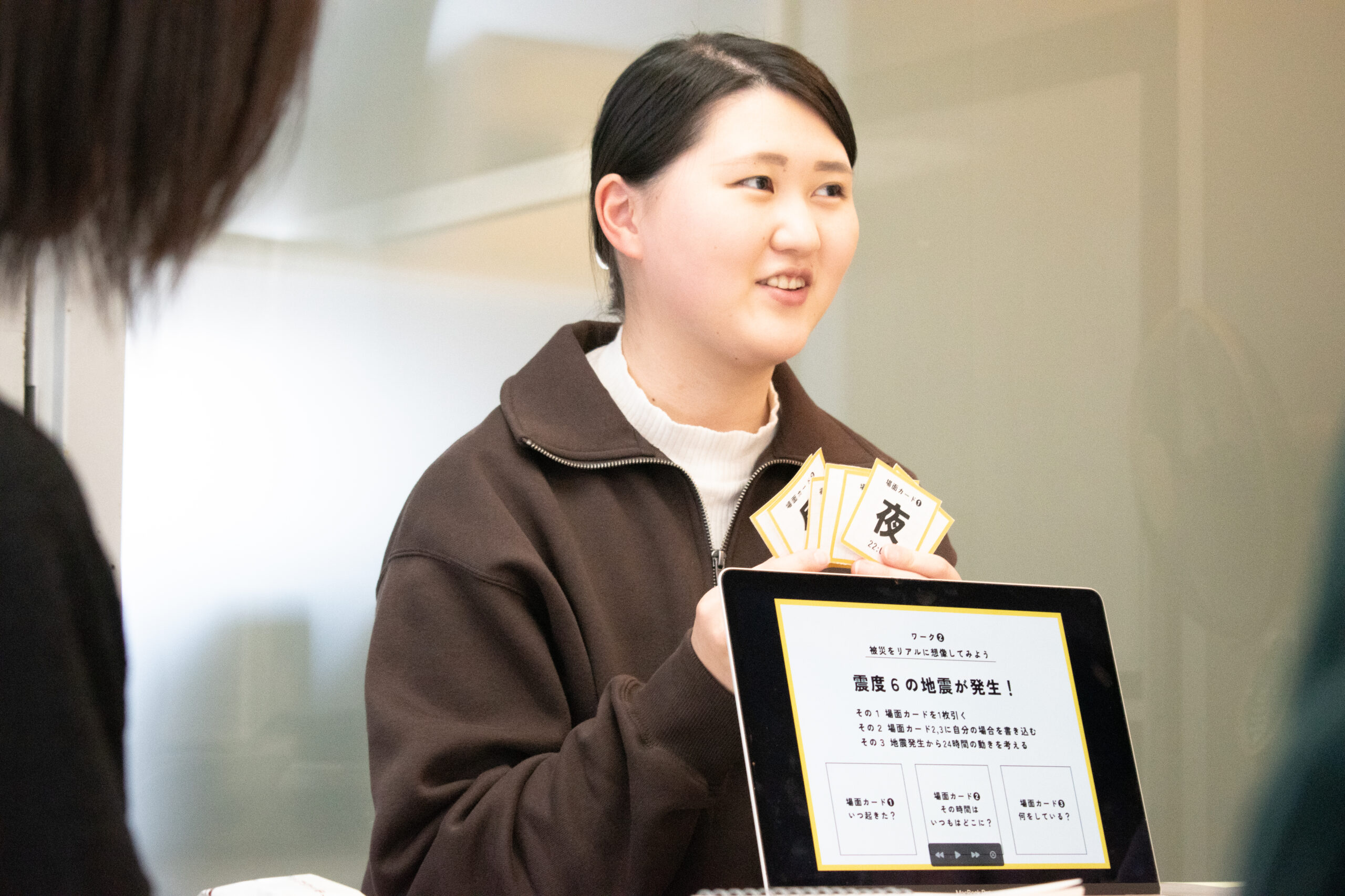 このほか、参加者には震度やマグニチュードの知識、ハザードマップなどの防災に役立つ情報も提供しています。「防災カフェ」では毎回、異なるテーマを扱っていますが、どんなテーマにおいても、防災について普段から考え続けることは難しいですが、「防災カフェ」をきっかけに少しでも備えなどの行動につながるといいなと考えています。