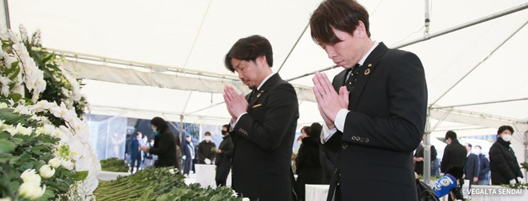 また、震災の経験を継承するため、新しい年度に向けてチームが新体制になった時に、必ず被災地を訪問し、鎮魂の活動を行っています。選手たちが被災地のチームとして先輩方が経験したことがチームの志や使命につながっているということを、それぞれが自分の頭で考えるための活動です。