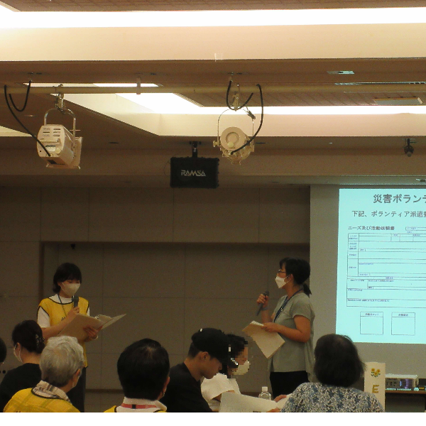 被災地の復旧や復興、被災者の生活再建や自立支援を目的に設置される災害ボランティアセンターの理解者を増やし、災害時の支え合いや助け合いを支援していただく人材を育成することを目的に取り組んでいます。